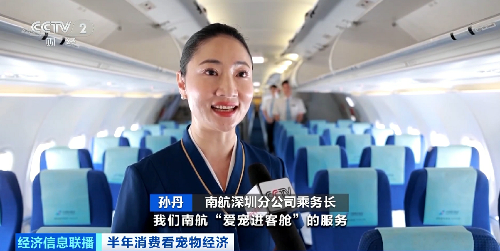 南航深圳分公司乘务长 孙丹:7月1日起,我们南航“爱宠进客舱”的服务已经覆盖超200条直达航线,携带宠物进客舱的旅客,原则上安排在经济舱最后一排靠窗户的座位,宠物需放置在前排座椅下方,当然如果有空位的话,旅客也可以购买联排座位安放小宠物。